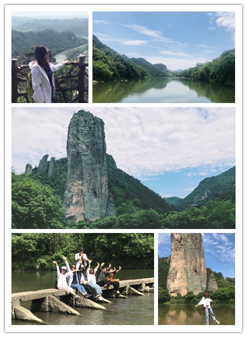鼎湖峰——最美的地方是岩,兀立于平地之上;一水,婉然于绝壁之下;一庙,隐身于苍翠之间。一下车,大家就被蓝天、白云、绿水、青山这幅美丽画卷深深吸引。这里,纵容着我们的小任性;满足我们的小文艺;包容着我们的小逗比……