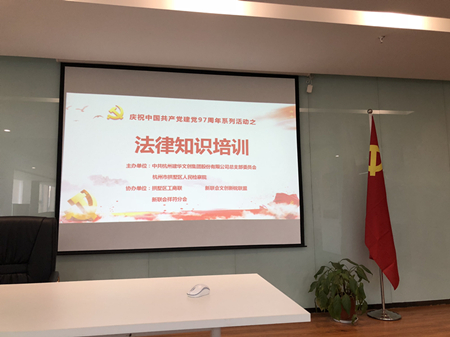 为庆祝中国共产党建党97周年,弘扬社会主义法治精神,切实提高建华文创集团党员领导干部法治思维,6月27日下午,由建华文创集团党总支、拱墅区人民检察院主办,拱墅区工商联、新联会文创新锐联盟、新联会祥符分会协办开展了一场“职务侵占犯罪典型案例剖析”主题讲座。