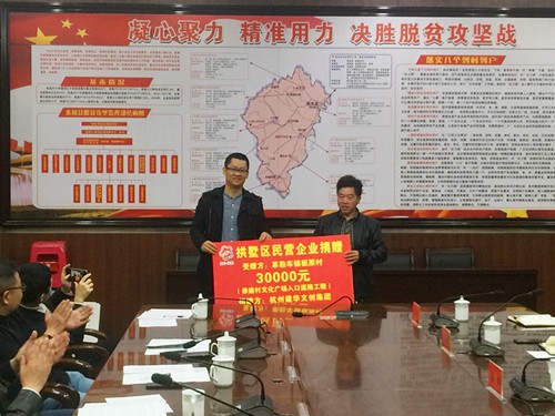 考察期间,两地召开了社会化扶贫对口帮扶座谈会。来凤县委副书记洪家进介绍了来凤县精准扶贫及对口帮扶工作情况。会上,两地企业家进行了交流发言,并举行了捐赠仪式。杭州建华文创集团为革勒车镇板栗村捐赠3万元用于修建村道路工程。