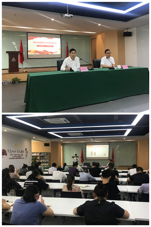 7月10日,建华文创集团2019年中总结大会在运河汽车电商园七楼会议室召开。会议由总裁戴海洋主持,董事长许土根、副总裁傅建华、各职能部门、下属控股、参股子公司全体职工参加会议,庐阳建华文创园同步进行视频会议。