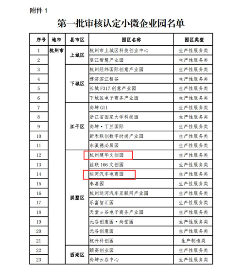 日前,省小微企业园工作联席会议办公室公布关于认定第一批小微企业园名单的公示,建华文创集团旗下运河汽车电商园、建华文创园2个园区成功上榜。
