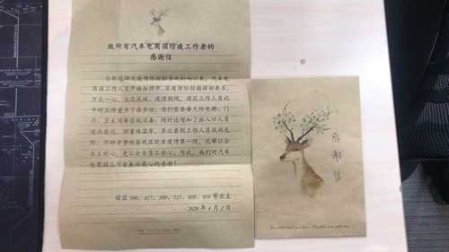 4月3日,运河汽车电商园管理中心收到了园区入驻企业的一面特殊的锦旗和感谢信,字里行间表达了对疫情期间冲锋在前和复工期间坚守一线的园区抗疫人员的感激之情。