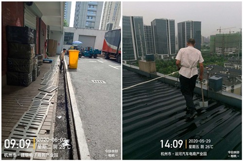 集团工程部、安全管理部结合各园区实际情况,制定防洪工作预案,密切监视天气变化,及时发布预警信息。充分发挥主管人员的领导力,带领各部门员工,积极应对可能发生的各种灾情,竭尽全力做好防洪防汛的各项工作。