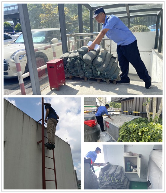 集团工程部对各设施配电、线路等设备进行检查、维护,确保设备在防汛期间能正常运行;重点对下水道、水泵等重点设施进行检查调试;及时清理雨水管道中的淤泥,对堵塞的雨水篦子进行多次疏通,确保排水畅通;对园区易坠物品、各楼顶平台进行全面检查。