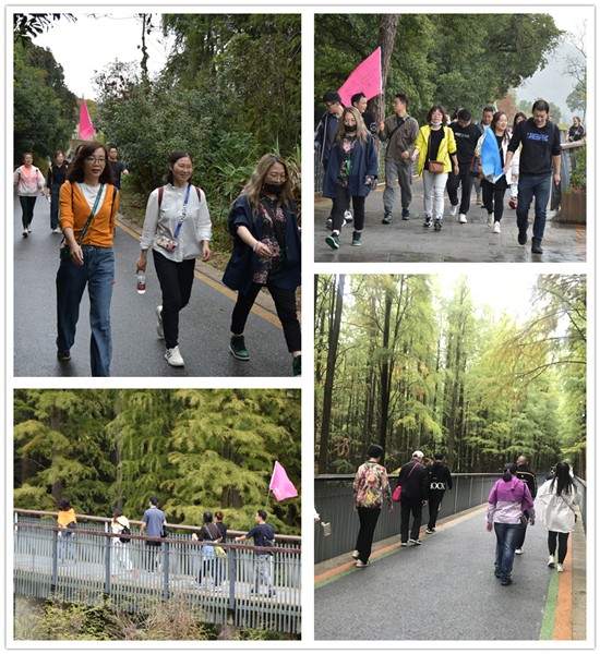 在活动中,各小分队或跑或走,相互鼓励;呼吸着新鲜的空气,大家三两结伴,有说有笑,充分释放工作压力。人在画中走,心随秋风行。我们时而漫步于栈道上,享受阵阵凉风带来的惬意。时而穿梭于密林中,感受山谷特有的寂静。时而驻足于平台上,感悟天地之间的浩渺宽广。在欣赏沿途优美静谧自然风光的同时,还尽情享受了全民健身的乐趣。