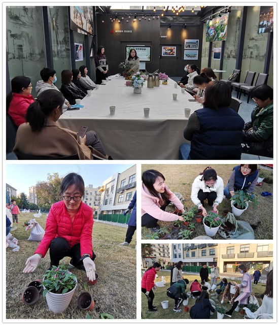 当天,陈列馆内形态各异的鲜花、绿植争鲜斗艳,泥土的芬芳,植物的清新,仿佛瞬间将人们置身于大自然。活动邀请了合肥美迪园艺技师授课,从植物品种如何识别到不同种类的植物该怎么浇水,再到养护小技巧等等进行了分享讲解。课上,大家情绪高涨,纷纷提问,对花卉绿植展现出浓厚的兴趣。随后,大家移步至大草坪,在老师的精心指导和帮助下,每位学员认真完成了取苗、移盆、填土等步骤,种下了自己喜爱的绿植。种植环节中,好多学员除了向老师讨教经验外,还相互交流,相互协作,分享着自己的制作成果,整个现场充满了欢乐的气息。