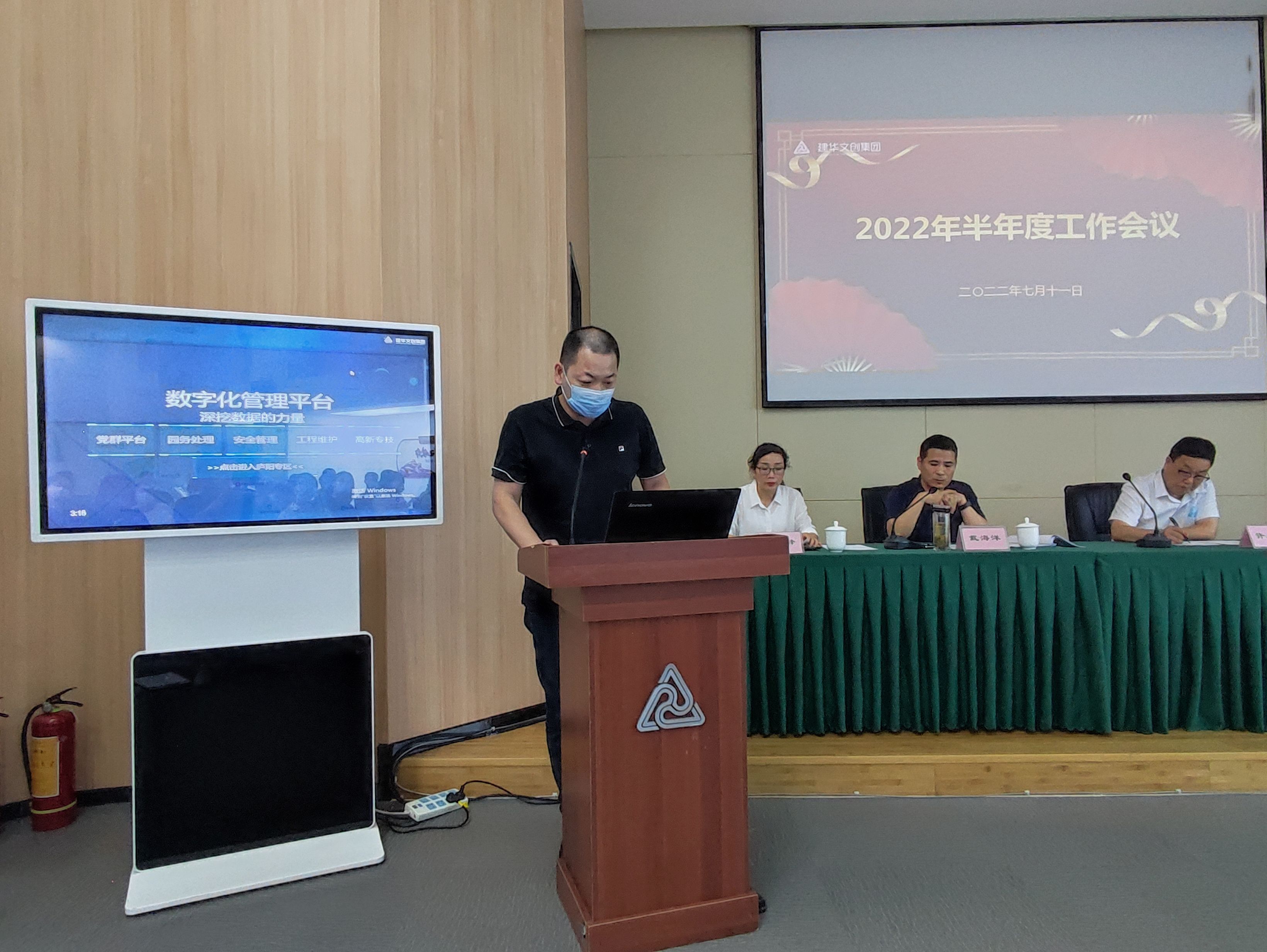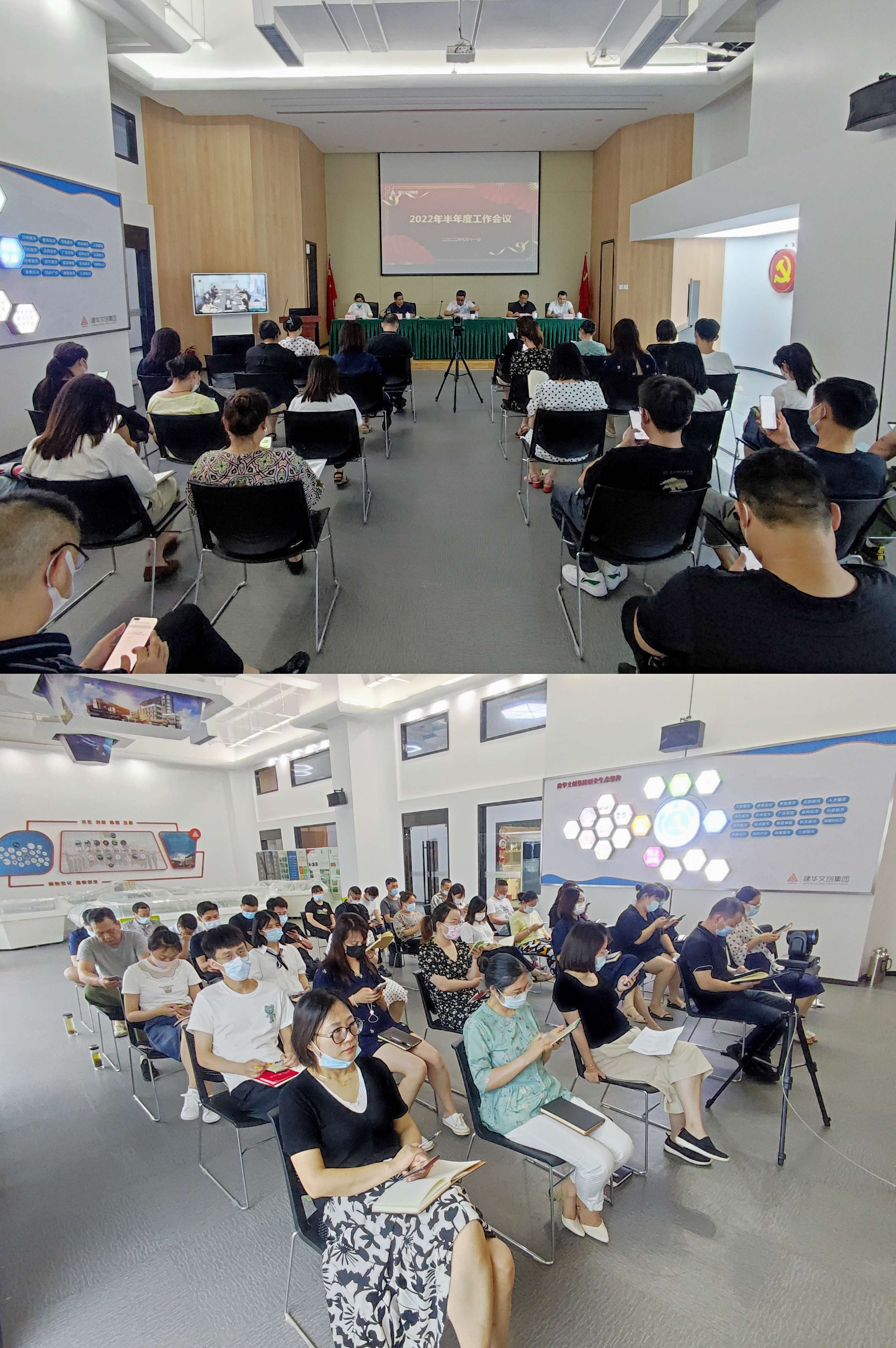 7月11日下午,建华文创集团在总部召开2022年上半年度总结大会。本次会议由集团董事长、总裁戴海洋主持,浙江建华集团常务副总经理、集团董事会顾问许土根先生应邀到会指导。