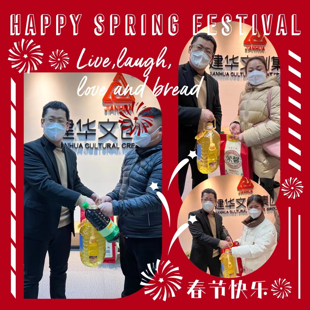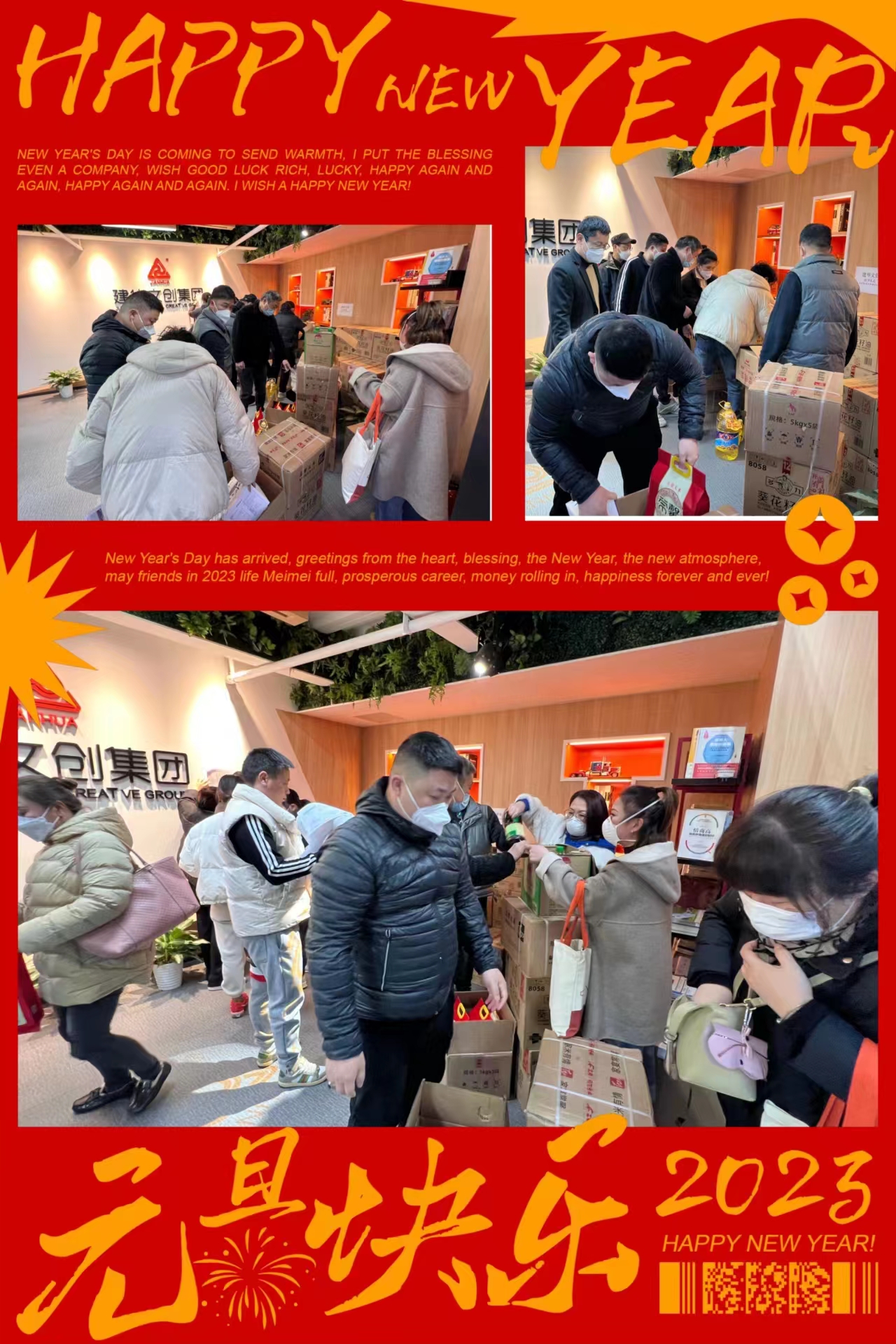 春节将至、年味愈浓,建华文创集团工会福利也伴随着新年脚步向职工们奔来啦!工会准备了购物卡、大米、食用油等春节福利,并由集团常务副总裁邹华东悉数发放给各位职工。每个人扛着沉甸甸的慰问品,只感觉累在手脚、却暖在心间。大家互送祝福,逗乐打趣,领取现场一片热闹景象。